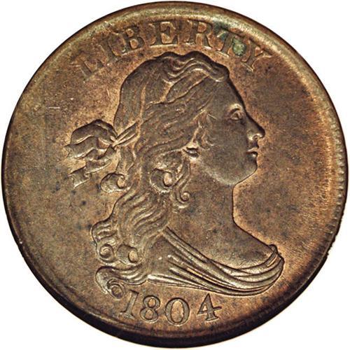 1804 1/2 C Plain 4, No Stems MS63 Brown NGC. C-13, B-1 1804[1/2 C] Plain 4, No Stems MS63 Brown NGC.