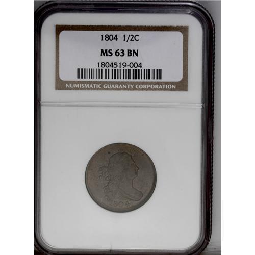 1804 1/2 C Plain 4, No Stems MS63 Brown NGC. C-13, B-1