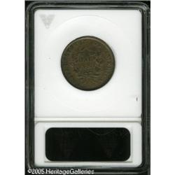 <B>1804 1/2 C Spiked Chin AU55 ANACS.</B></I> B-6, C-6, R.2. Light tan color dominates, although wisps of mahogany are also present on the obverse. A few minor obverse marks, none require mention. The reverse border exhibits lengthy die cracks, but these have not yet developed into the heavy breaks sometimes seen. Probably the most popular of the Spiked Chin die pairings, due to the many die states of the reverse. Lot:5082