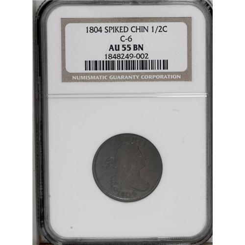 1804 1/2 C Spiked Chin AU55 NGC. C-6, B-6, R.2. The re