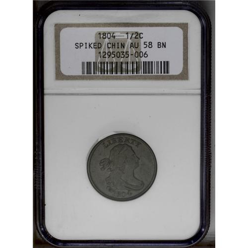 1804 1/2 C Spiked Chin AU58 NGC. C-8, B-7, R.1. 1804 i