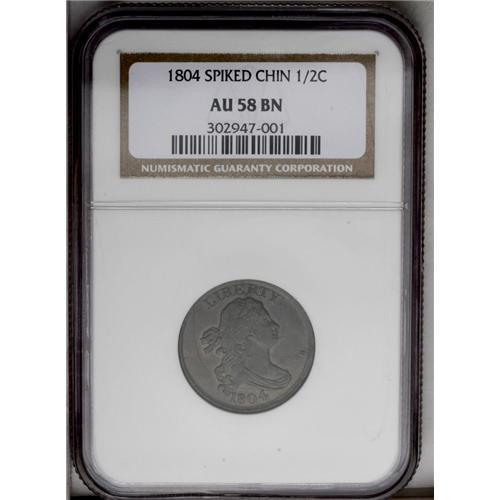 1804 1/2 C Spiked Chin AU58 NGC. C-8, B-7, R.1. A maho 1804[1/2 C] Spiked Chin AU58 NGC.