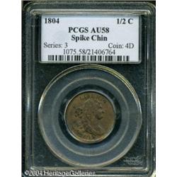 1804 1/2 C Spiked Chin AU58 PCGS. B-7, C-8, R.1. A 1804 1/2 C Spiked Chin AU58 PCGS.