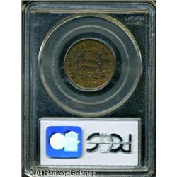 1804 1/2 C Spiked Chin AU58 PCGS. B-7, C-8, R.1. A <B>1804 1/2 C Spiked Chin AU58 PCGS.</B></I> B-7, C-8, R.1. A die crack to the R in AMERICA identifies this Spiked Chin Cohen variety. A suitably struck representative with olive, tan, and lavender colors. A few faint slide marks on the right reverse border, but surprisingly smooth overall. Population: 6 in 58, 19 finer (10/04). <BR><BR><B>Important notice:</B> Heritage usually auctions material at the rate of 200-250 lots per hour. On some occasions eBay Live bid software or the Internet may not be able to keep up with the pace of the auction. We recommend placing a realistic absentee bid now as insurance to avoid disappointment. Occasionally the auctioneer may eliminate or reject an eBay Live bid, and the auctioneer may also reopen a lot after the close of the eBay live bidding (usually because we missed an audience bid), and may reject your bid even if it shows you as the winning bidder. By bidding via eBay Live, you agree that Heritage may award the lot to another bidder at its sole discretion under the circumstances described above or any other reasonable circumstances. Since eBay bids are not shown to us until we open the lot on the floor, we treat those bids just like floor bids. In most cases the floor responds before the eBay bid is presented to us, due to Internet lag time, so for consistency we have made it a policy that floor bids are always considered first over tie eBay live bids. Also please note that all Heritage lots purchased through eBay Live carry a 20% Buyer's Premium. Please make sure you read the Terms and Conditions before you bid. This lot is being auctioned in conjunction with a live floor auction by Heritage Galleries & Auctioneers. All final auction and invoice information will be supplied by Heritage Galleries & Auctioneers, and all other information should be considered preliminary. Lot:5016