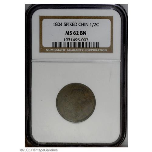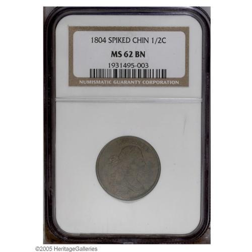 1804 1/2 C Spiked Chin MS62 Brown NGC. B-7, C-8, R.1. 1804[1/2 C] Spiked Chin MS62 Brown NGC.