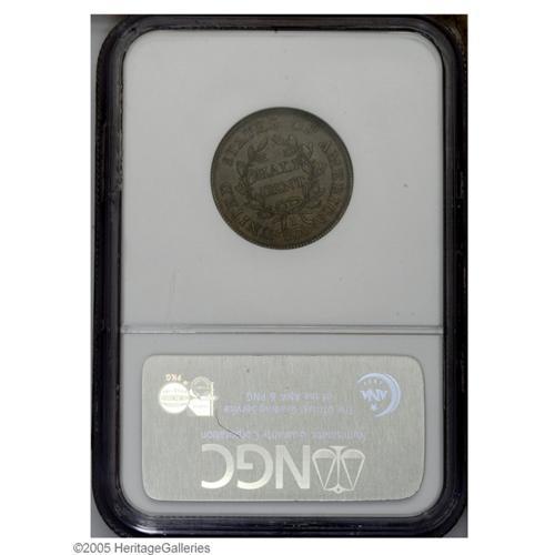 <B>1804<1/2 C> Spiked Chin MS62 Brown NGC.</B></I> B-7, C-8, R.1. The popular Spiked Chin variety, believed to be caused by a bolt or some other metal tool that came into contact with the die. This well struck piece has walnut-brown color, consistent on the reverse and dappled with steel-blue hues on the obverse. The surfaces are pleasantly undisturbed. Population: 6 in 62, 7 finer (10/05).