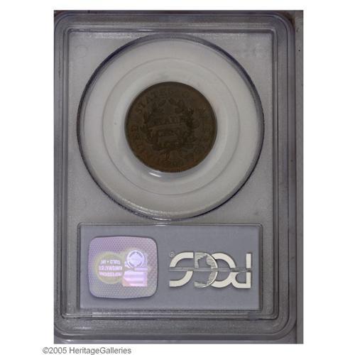 <B>1804<1/2 C> Spiked Chin MS62 Brown PCGS.</B></I> B-7, C-8, R.1. The final Spiked Chin die marriage, quickly identified by the die crack through the R in AMERICA. This more advanced die state displays a lengthy cud over LIBE, stopping before the R in LIBERTY. Smooth chestnut-brown surfaces with tinges of underlying red.