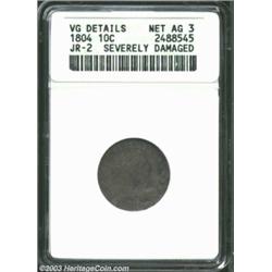 1804 10C 13 Stars on Reverse--Severely Damaged--ANACS. VG Details, Net AG3. JR-2, R.5. The lower obv