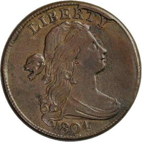 <B>1804<1C> S-266c, B-1, R.2--Environmental Damage--NCS. AU Details. Fine 15 EAC.</B></I> Die State IV. Walter Breen's <I>Encyclopedia of Early United States Cents 1793-1814</B></I> comments that more than half of the existing examples of the 1804 cent, estimated around 1,000 pieces, are Die State IV. This latest die state has as diagnostics rim breaks above RTY on the obverse and MERIC on the reverse. The present example has glossy, medium-brown fields that show faint, faded red in the protected areas. However, the obverse fields are highly porous over most of the area to the right of an imaginary line that runs from the 1 in the date to the R in LIBERTY. The reverse is smooth. Examination under a glass reveals a straight scrape across Liberty's neck from the forecurl to the curl below the ribbon, and a handful of smaller marks on each side of no singular consequence. Aside from the obverse surface porosity, this remains an attractive and delightfully well detailed example of this key-date large cent.<BR><I>Ex: Silton; Ray Johnson (12/10/1966).</B></I> Envelope Included.
