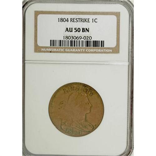 <B>1804 1C Restrike AU50 NGC.</B></I> NGC Census: (0/0). PCGS Population (0/0). (#45343)<BR><BR><b>Shipping:</b> Coins & Currency (<a target="_blank" href="http://www.heritageauctions.com/common/shipping.php">view shipping information</a>)