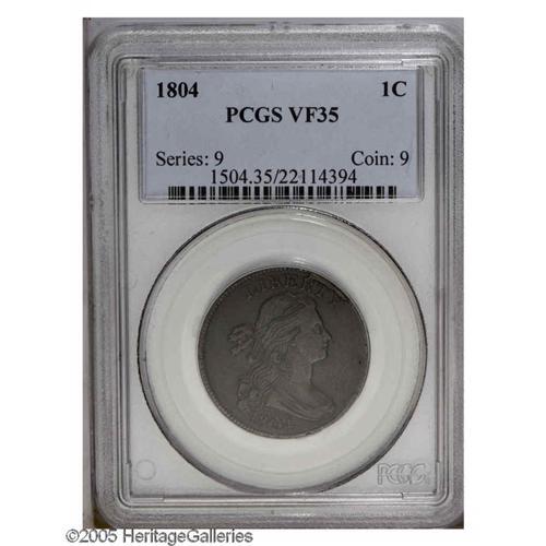 1804 1C VF35 PCGS. S-266, R.2. Die State IV, large die 1804[1C] VF35 PCGS.