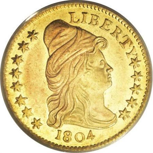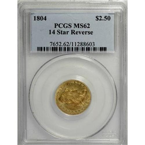 <B>1804 $2 1/2 14 Star Reverse MS62 PCGS.</B></I> Breen-6119, BD-2, R.4. With less than 200 pieces believed to be extant in any condition, the 1804 quarter eagle is a coin that the vast majority of today's collectors will only read about. Acquisition of an example in any condition would be considered a milestone for even the most advanced collections, but obtaining a true Mint State example is a goal few realize. This sentiment is supported by the fact that the finest Smithsonian Institution specimen is considered to grade AU55.<BR> While the much rarer BD-1 variety of this issue displays 13 reverse stars, the current example, BD-2, is known as the 14 Star Reverse variety. The significance of the 14 stars is not definitively known, although it is widely accepted that the extra star was simply the result of a die layout error. The budget-conscious early Mint would not have discarded a die for such a minor issue, hence the existence of this variety today. Some numismatic researchers conjecture that this reverse die, which was also used to strike the 1804 JR-2 dimes, is actually an unused 1798 die. The main evidence cited to support this theory is the cross pattern arrangement of the reverse stars, as opposed to the arc pattern that became the accepted style on later issues. <BR> The three known die states of this variety are of little concern to most collectors since any attempt to collect this issue by die state, or even die variety for that matter, is reserved for the most esteemed and financially capable of numismatists. But for the sake of posterity, this example is identified here as Die State a/a, with both sides free of lapping, clashing or the cracks that are found on the two later die states. It is interesting to contemplate how a coin with a mintage of 3,327 pieces (the obverse die was used on both BD-1 and BD-2) could have fatigued to the point of developing die cracks. The reverse die was also employed to strike at least a few thousand 1804 dimes, yet it is only known in the perfect state.<BR> The current piece has bright, lustrous surfaces with a semiprooflike finish in the fields. Each side has a slight overlay of reddish patina, noticeable both in the fields and over the devices. Well struck with a few slight marks and shallow planchet flakes on both obverse and reverse. Population: 7 in 62, 2 finer (10/07).<BR><I>From The Leo Beranek Collection of Early Federal Coinage.</B></I><BR><BR><B>Coin Engraver:</B> Robert Scot<BR><BR><b>Shipping:</b> Coins & Currency (<a target="_blank" href="http://www.heritageauctions.com/common/shipping.php">view shipping information</a>)