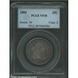 1804 25C VF30 PCGS. B-1, High R.3. While not a one-year type like the 1796, the 1804 is often mentio
