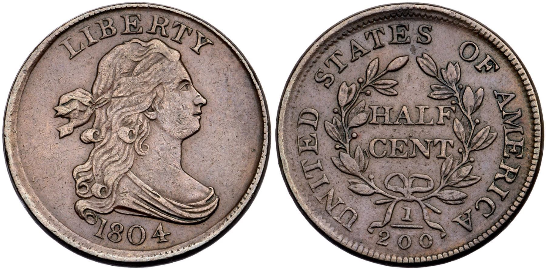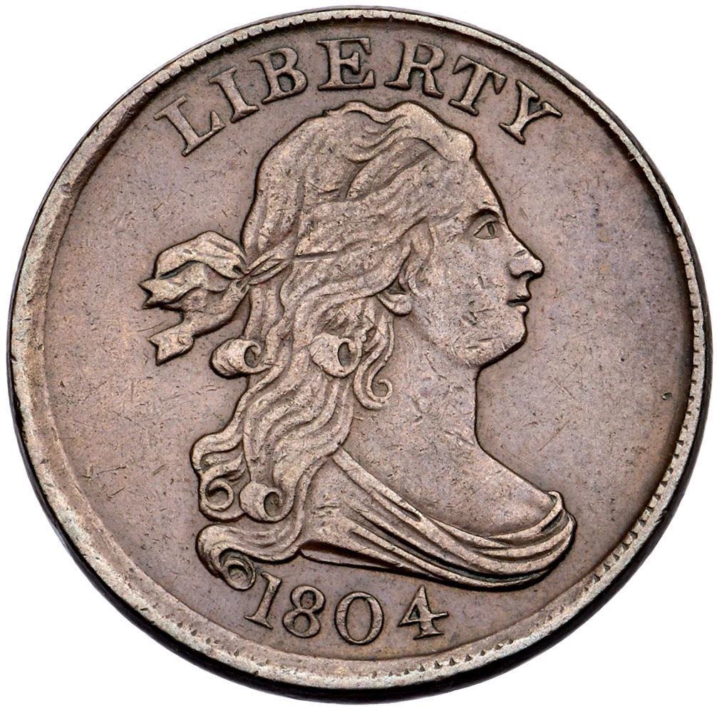 1804 C-11 R-3 Plain 4 Stems VF35Choice glossy medium brown and chocolate. The only mark of any note is a thin horizontal nick hidden in the hair right of the ribbon. Scarce EDS, Manley State 1.0. The wreath ribbon is strong. A premium example of this popular “Redbook” variety.Certificate Number: Pedigree: Ex EAC 1980:67 - ANA 1989 Bowers & Merena - Ken Seachman - Superior 2/22/2005:1140 - Bob Kebler Collection