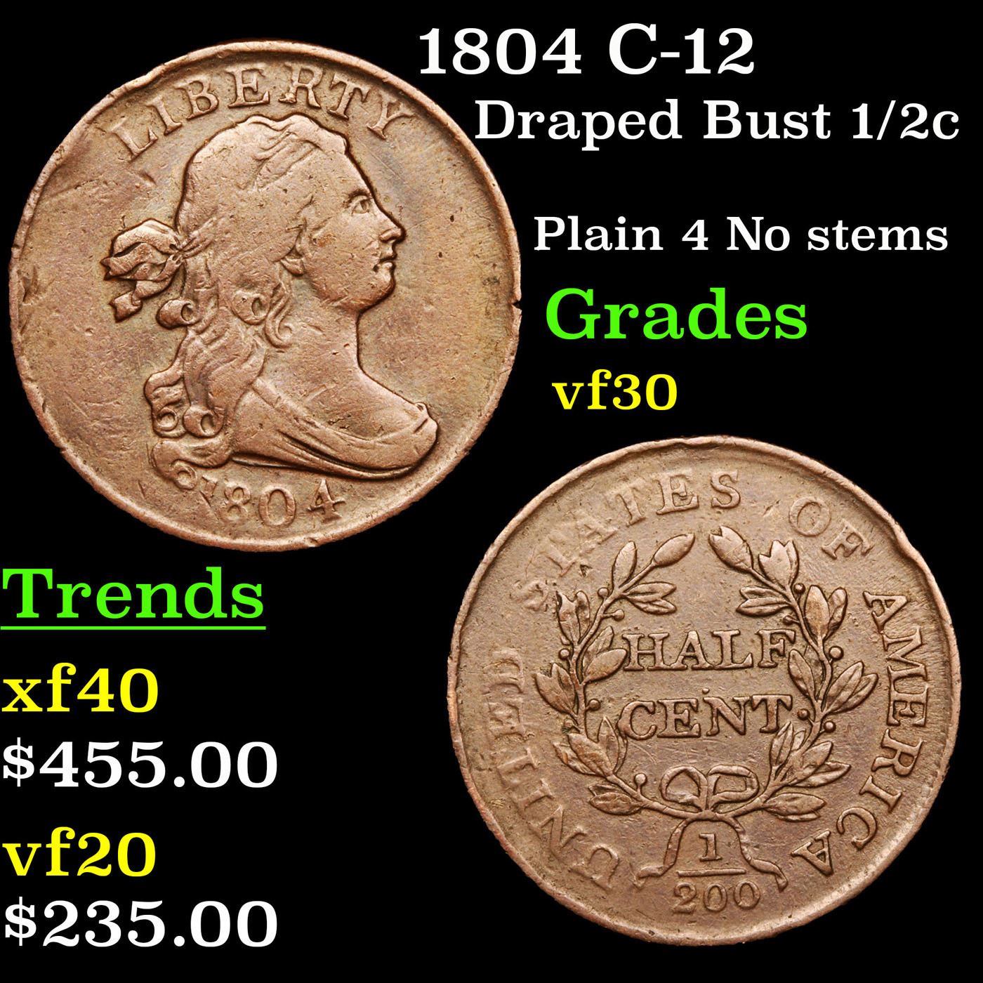 1804 C-12 Draped Bust Half Cent 1/2c Grades vf++.