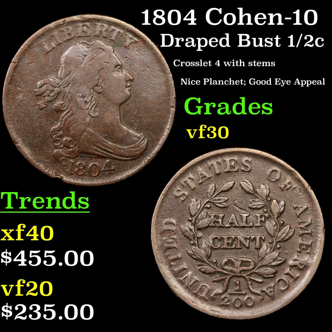 1804 Cohen-10 Draped Bust Half Cent 1/2c Grades vf++.