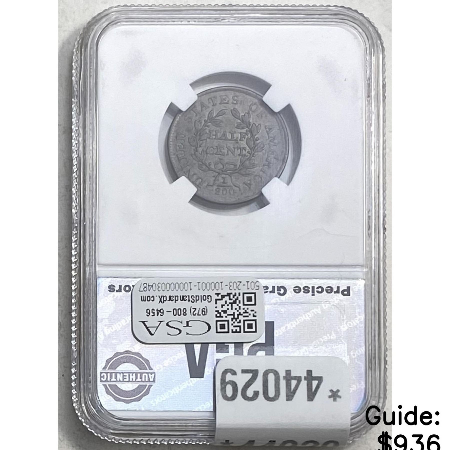 l. All non-certified coins and currency are guaranteed genuine, but are not guaranteed as to grade, since grading is a matter of opinion, an art and not a science, and therefore the description rendered by GSA or any third-party grading service may not agree with the opinion of others (including trained experts), and the same expert may not grade the same item with the same grade at two different times. GSA may, but is not obligated to, express an opinion as to non-certified numismatic items, in GSA’s opinion, or by its employees’ experience and the current interpretation of the American Numismatic Association’s standards as of the date the catalog was prepared. There is no guarantee or warranty expressed or implied that the grading opinions utilized by GSA, if any, will meet the standards of any grading service at any time in the future.