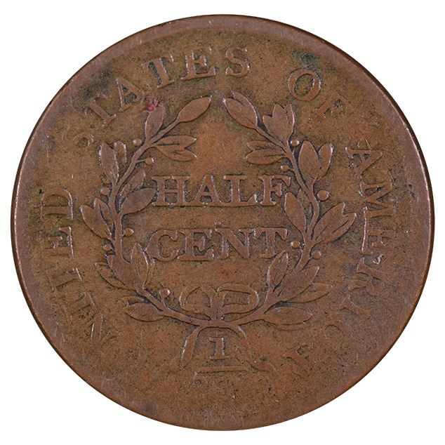 One 1804 Draped Bust Crosslet 4 Stemless Half Cent Coin.