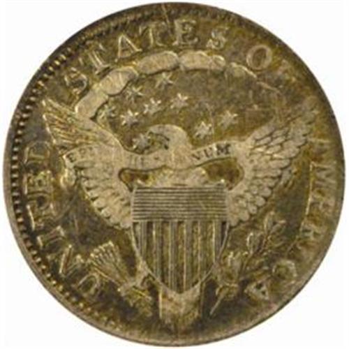 <style type="text/css"> body, td, th { font-family: Arial, Helvetica, sans-serif; font-size: 12px; color: #482424; margin: 0px; padding: 0px; } #header { background-image: url(http://www.bowersandmerena.com/ebay/images/template_v3_01.gif); clear: both; background-color: #590303; border-top-width: 2px; border-top-style: solid; border-top-color: #B38C4F;}#header #header_wrapper { height: 75px; clear: both; width: 800px; margin-right: auto; margin-left: auto; background-image: url(http://www.bowersandmerena.com/ebay/images/template_v3_03.gif); background-repeat: no-repeat; background-position: right; color: #F3EDCC;}#header #header_wrapper #header_logo { float: left; height: 75px; width: 444px; background-image: url(http://www.bowersandmerena.com/ebay/images/template_v3_02.gif); background-repeat: no-repeat; font-size: 10px; text-transform: capitalize; color: #B38C4F;}#header #header_wrapper #header_right { float: left; height: 75px; width: 356px; text-align: right;}#header #header_wrapper #header_right #headerLoginBtn { margin-bottom: 30px;}#header #header_wrapper #header_right input#txtSearch { color: #B49056; border: 1px solid #B49056; width: 175px; padding-top: 3px; padding-right: 3px; padding-bottom: 4px; padding-left: 3px;}#nav { height: 37px; background-image: url(http://www.bowersandmerena.com/ebay/images/template_v3_05.gif); clear: both;}#nav #nav_wrapper { height: 35px; width: 800px; margin-right: auto; margin-left: auto; border-left-width: 1px; border-left-style: solid; border-left-color: #B38C4F;}#nav #nav_wrapper a { padding-right: 15px; padding-left: 15px; border-right-width: 1px; border-right-style: solid; border-right-color: #B38C4F; height: 25px; padding-top: 10px; display: block; float: left; text-decoration: none; font-weight: bold; color: #5D0303;}#nav #nav_wrapper a:hover { color: #B38C4F;}#nav #nav_wrapper #search { float: right; padding-top: 7px;}#nav #nav_wrapper #search #txtSearch { font-family: Arial, Helvetica, sans-serif; font-size: 10px; text-transform: uppercase; color: #D2AE75; border: 1px solid #B38C4F; padding: 3px;}#content_bgd { background-image: url(http://www.bowersandmerena.com/ebay/images/template_v3_09.gif); background-repeat: repeat-y; background-position: center; padding-top: 15px; padding-bottom: 15px; background-color: #FBFBDB;}#content_wrapper { clear: both; height: auto; width: 800px; margin-right: auto; margin-left: auto;}.LotDetailWhite{ line-height:normal; font-size:13px; font-family: arial,helvetica,sans-serif; color: White; font-weight: bold;}.LotDetailInformation{ line-height:normal; font-size: 13px; font-family: arial,helvetica,sans-serif;}.LotDetailMessage{ line-height:normal; font-size: 13px; font-family: arial,helvetica,sans-serif; color: red;}}tr.HeaderAuctionTitle td { color: #000000; font-weight: bold; padding: 2px; background-image: url(http://www.bowersandmerena.com/ebay/images/template_v3_05.gif); background-repeat: repeat-x; border-bottom-width: 1px; border-bottom-style: solid; border-bottom-color: #B38C4F;}table.AuctionSummary a, table.AuctionSummary a:link, table.AuctionSummary a:visited { color: #0000FF; text-decoration: none;}}td.tableHeaderLeft { border-left-width: 1px; border-left-style: solid; border-left-color: #B38C4F;}td.tableHeaderRight { border-right-width: 1px; border-right-style: solid; border-right-color: #B38C4F;}td.tableCellMiddle { border-left-width: 1px; border-left-style: solid; border-left-color: #B38C4F; border-right-width: 1px; border-right-style: solid; border-right-color: #B38C4F; padding: 5px;}tr.footer td { border-top-width: 1px; border-top-style: solid; border-top-color: #B38C4F;}</style></head><body><div id="header"> <div id="header_wrapper"> <div id="header_logo"> </div> <div id="header_right"> </div> </div></div><div id="nav"> <div id="nav_wrapper"> <a href="http://www.bowersandmerena.com">Our eBayLive Auctions</a> <a href="#PaymentInfo">Payment Information</a> <a href="#ShippingInfo">Shipping Information</a> <a href="#About">About Bowers and Merena</a> </div></div><div id="content_bgd"> <div id="content_wrapper"> <table width="100%" border="0" cellpadding="5" cellspacing="0" class="AuctionSummary"> <tbody> <tr class="HeaderAuctionTitle" style="height: 25px;"> <td align="left" class="tableHeaderLeft" > </td> <td align="center" class="tableHeaderRight"> <span style="font-size: large;">Lot #437. 1804 Draped Bust Dime. JR-1. Rarity-5. 13-Stars Reverse. VF-35 (NGC).</span> </td> </tr> <tr> <td colspan="3" class="tableCellMiddle"> The 1804 Dime is one of the classic rarities in the entire Draped Bust silver-coin series. The reported mintage for calendar-year 1804 is just 8,625 pieces--a total that likely accounts for most of the Dimes struck from 1804-dated dies. Perhaps surprisingly for such a low-mintage issue, there are two die marriages known. Survivors from both are very rare, although JR-1 with 13 stars in the reverse field is seen a bit more often than JR-2. Both die varieties are equally rare in the finer circulated grades, and neither is known in Mint State.The coin that we are offering here was set aside after spending several years in circulation. Given the fact that the numismatic hobby was virtually nonexistent in the United States during the early decades of the 19th century, the long-term survival of this coin was probably a matter of chance. The wear is mostly moderate, and it is fairly evenly distributed even though some peripheral areas are softer than the balance of the coin's surfaces. It appears as though the strike could have been better executed near the rims, but we stress that this is not an uncommon attribute for a product of the early U.S. Mint. Rich charcoal-gray patina blankets both sides, through which one can see warmer orange-gold undertones as the coin dips into a light. There are relatively few abrasions in the context of the assigned grade, and a somewhat glossy texture is noted solely for accuracy.