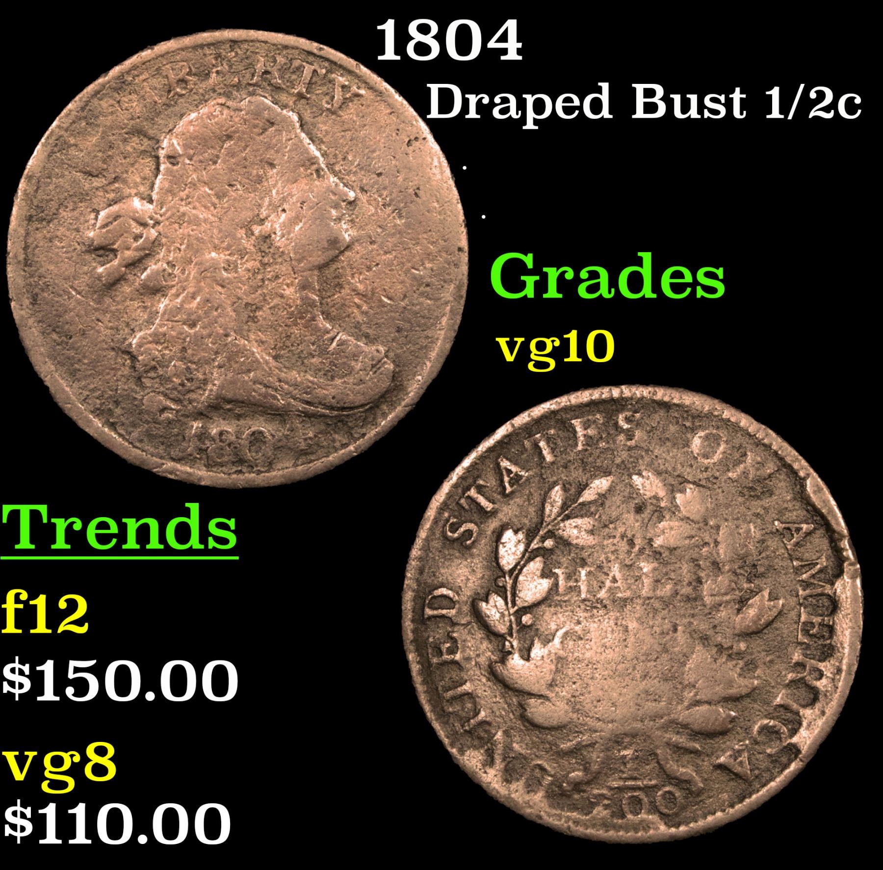 1804 . . Draped Bust Half Cent 1/2c Grades vg+.