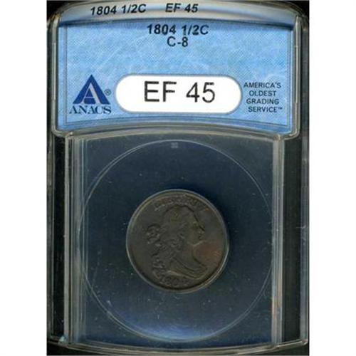 1804 Draped Bust Half Cent. 4, stems ANACS EF45