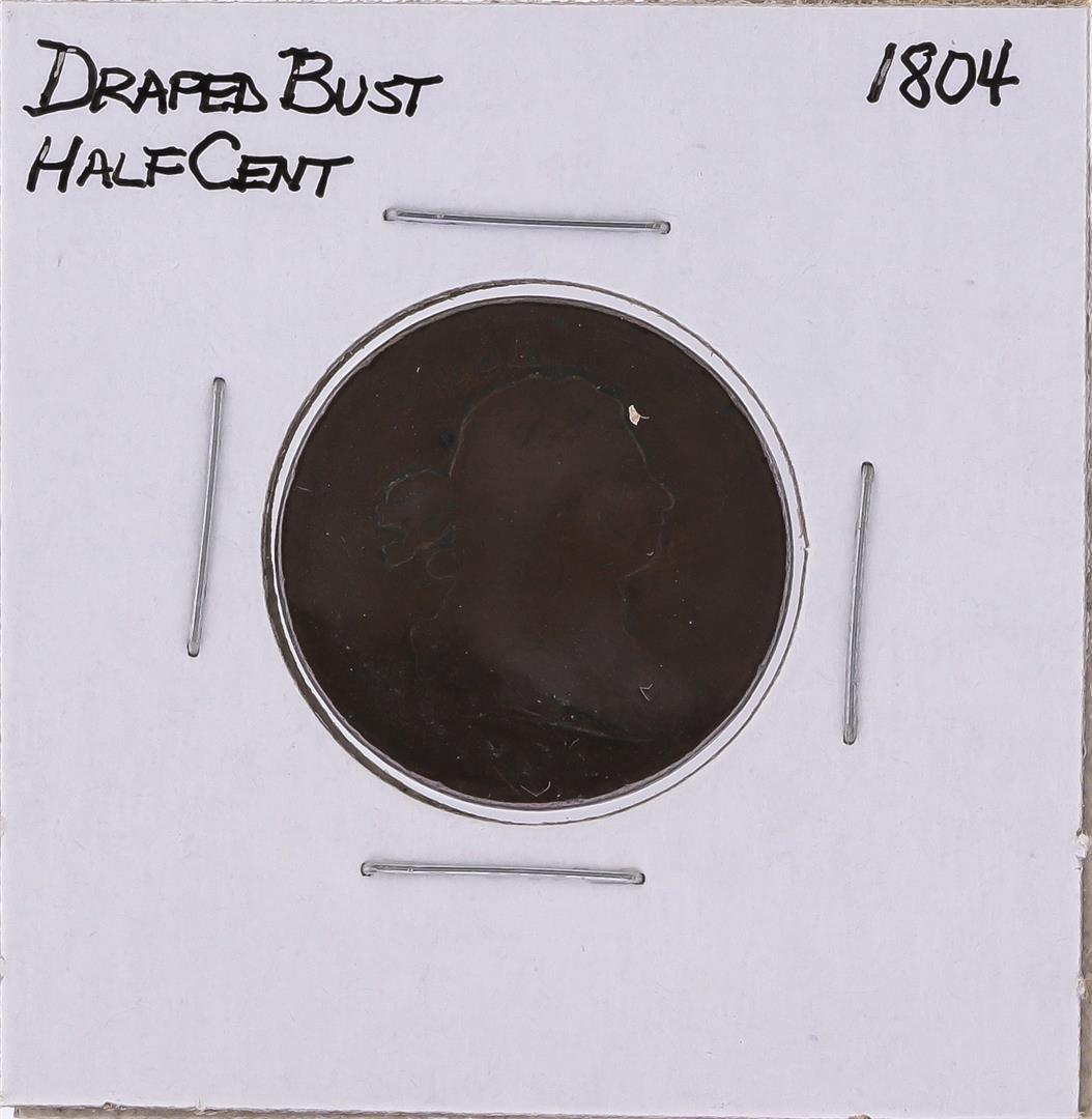 One 1804 Draped Bust Half Cent Coin.