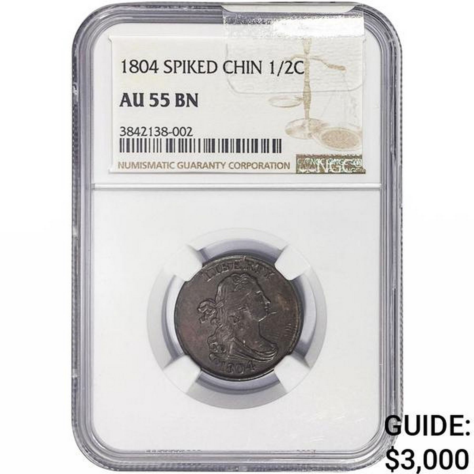 1804 Draped Bust Half Cent NGC AU55 BN Spiked Chin