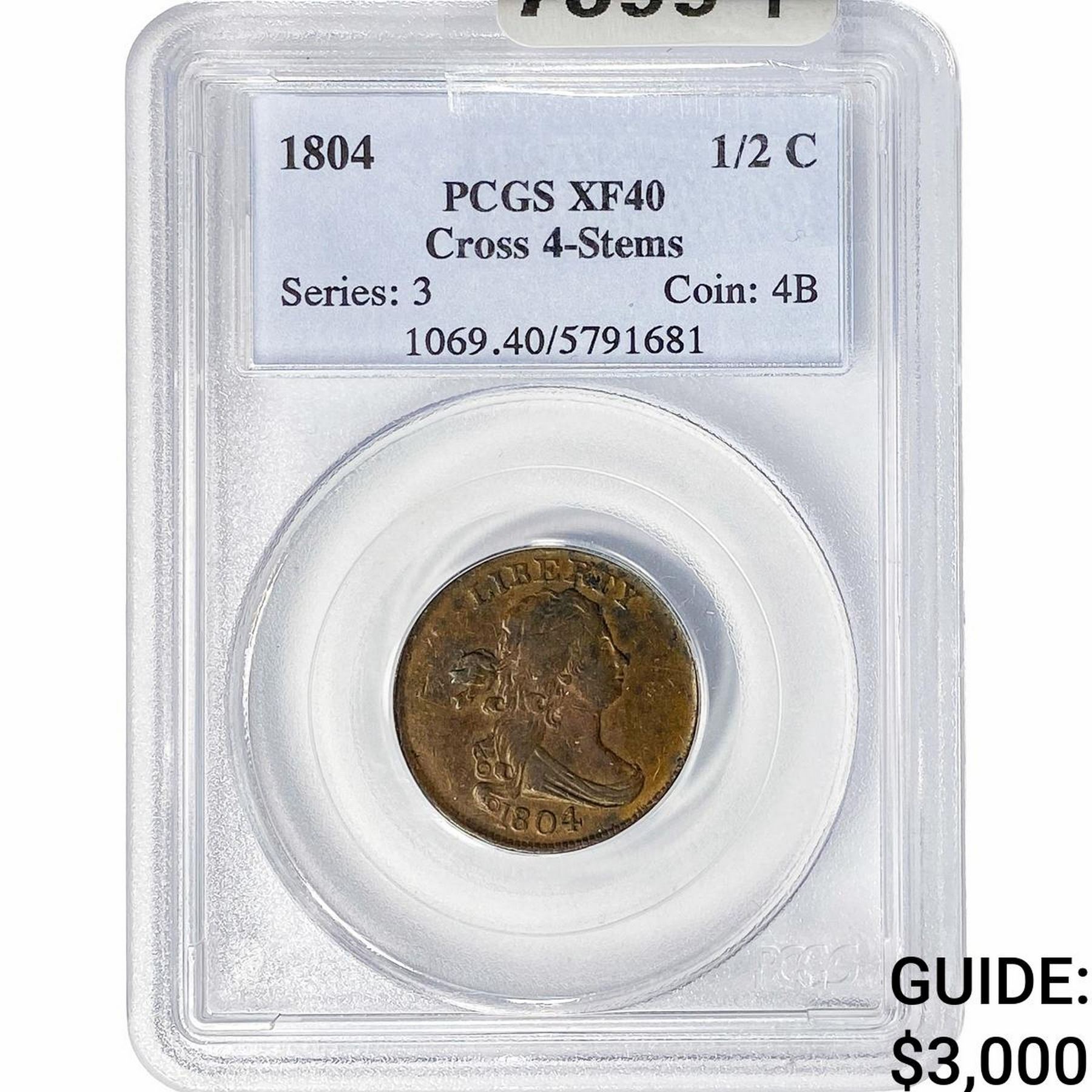1804 Draped Bust Half Cent PCGS XF40 Cross 4-Stems