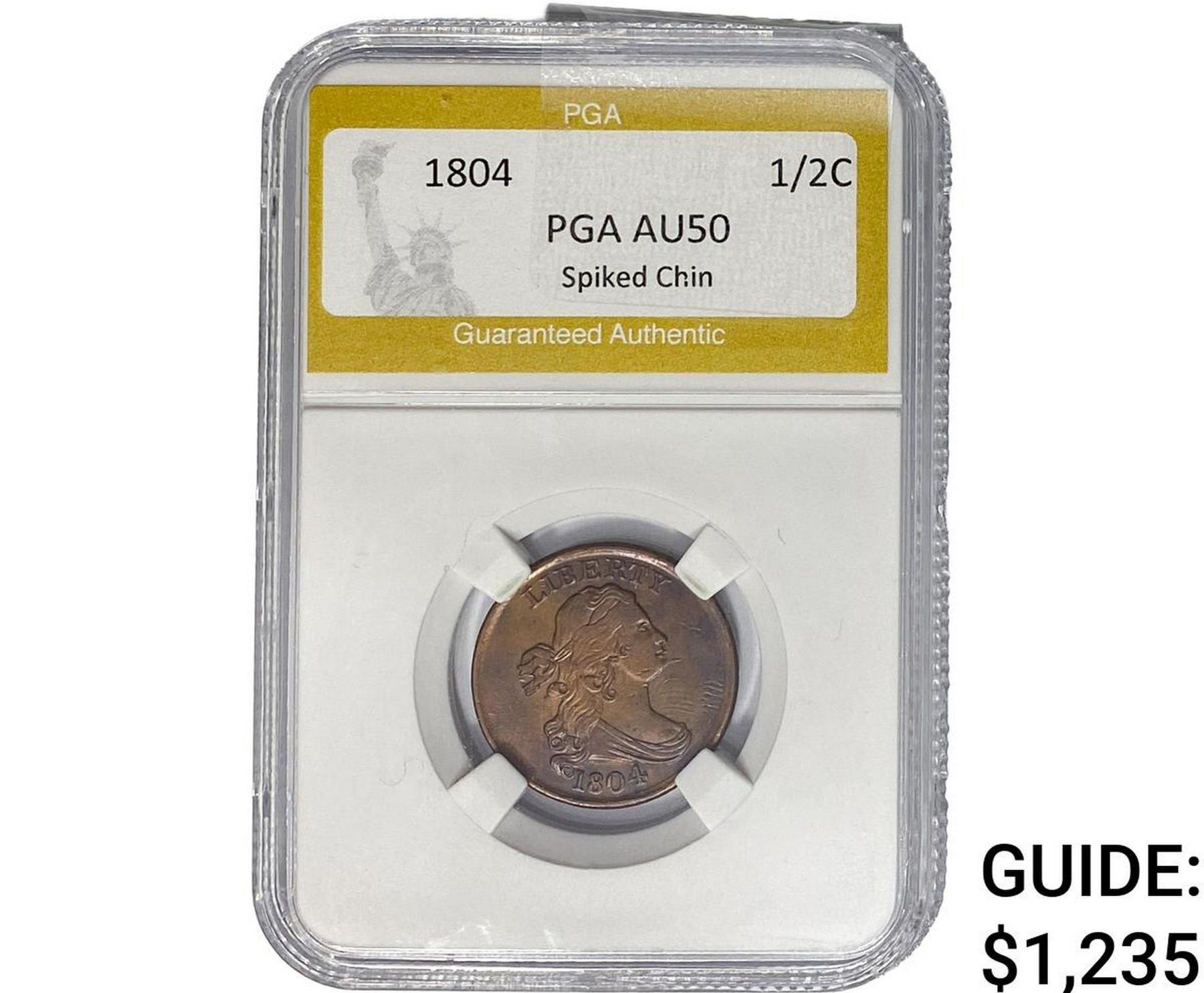 1804 Draped Bust Half Cent PGA AU50 Spiked Chin