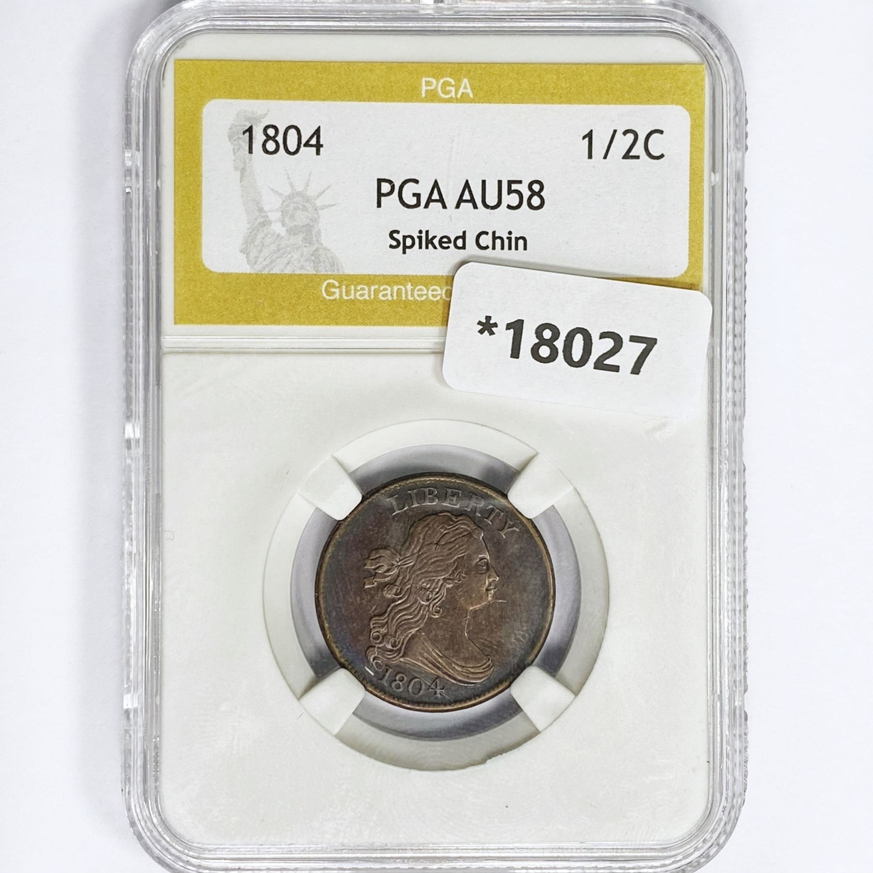 1804 Draped Bust Half Cent PGA AU58 Spiked Chin