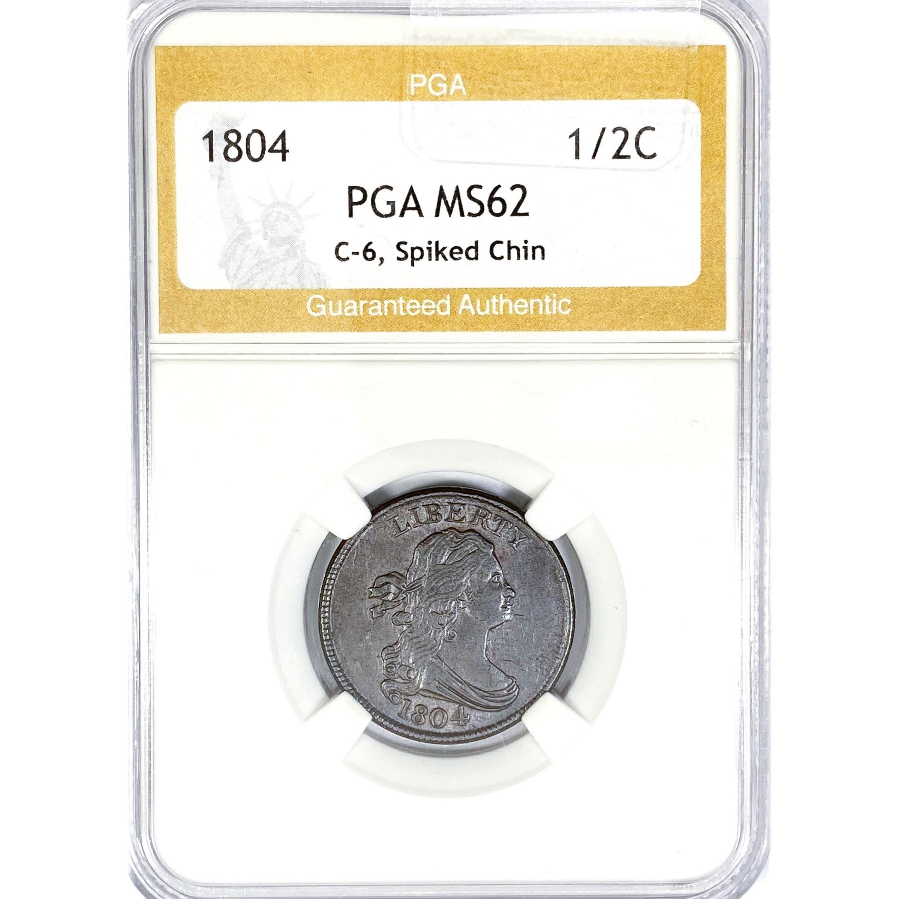 1804 Draped Bust Half Cent PGA MS62 Spike Chin C-6