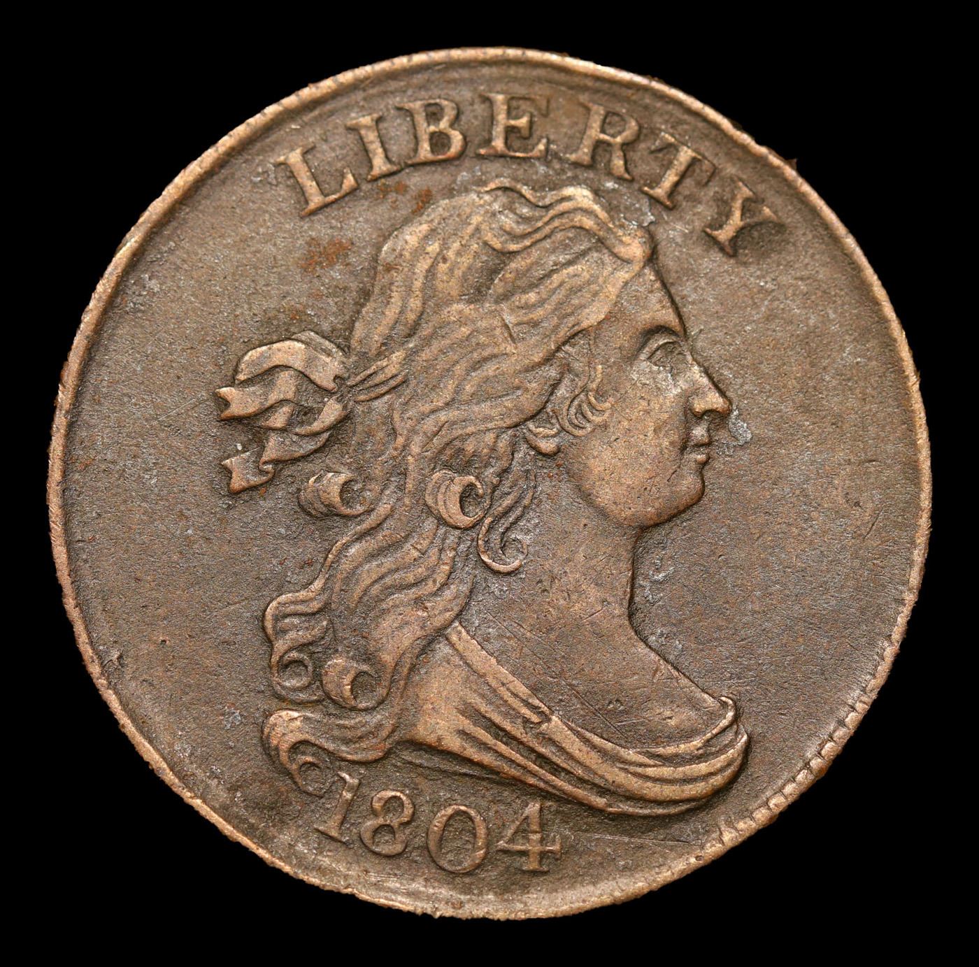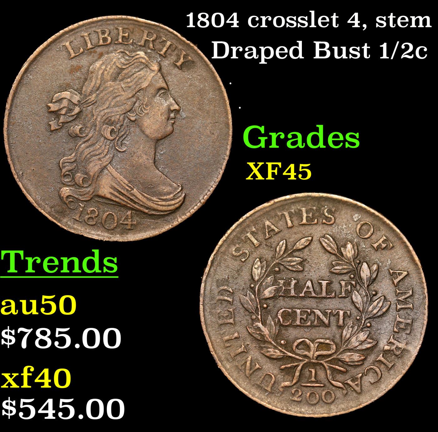 1804 Draped Bust Half Cent crosslet 4, stem 1/2c Grades xf+