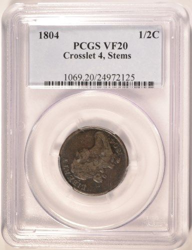 1804 HALF CENT, PCGS VF-20 CROSSLET 4, STEMS