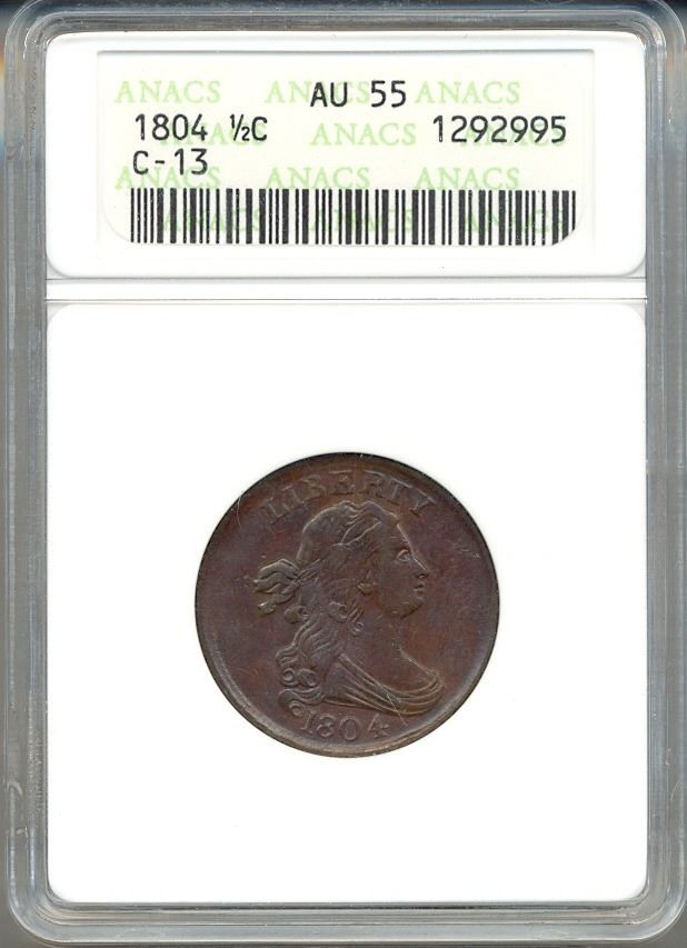 One 1804 Liberty Half Cent Coin ANACS AU55.