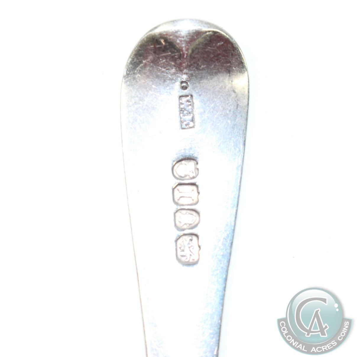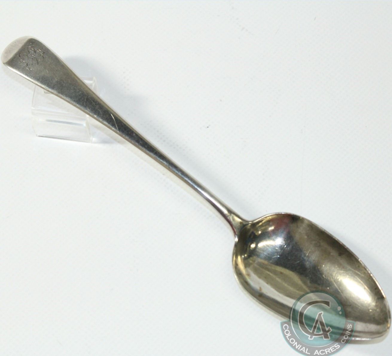 1804 London; William Eaton Sterling Silver Serving Spoon. Spoon measures approx. 8 1/2 inches in length with a weight of 58.42 grams. Has been monogrammed with a 'B'.