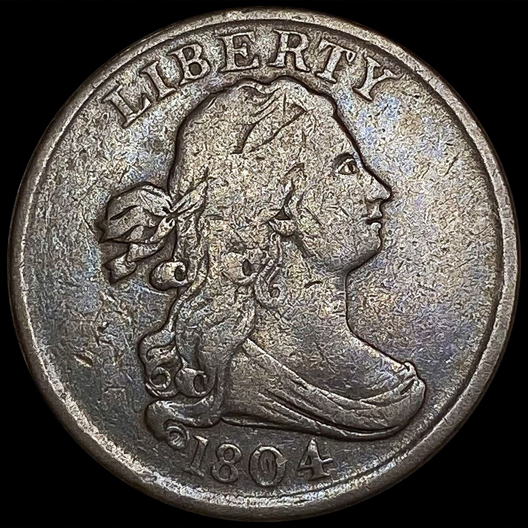 1804 Plain 4 Draped Bust Half Cent NEARLY UNCIRCUL