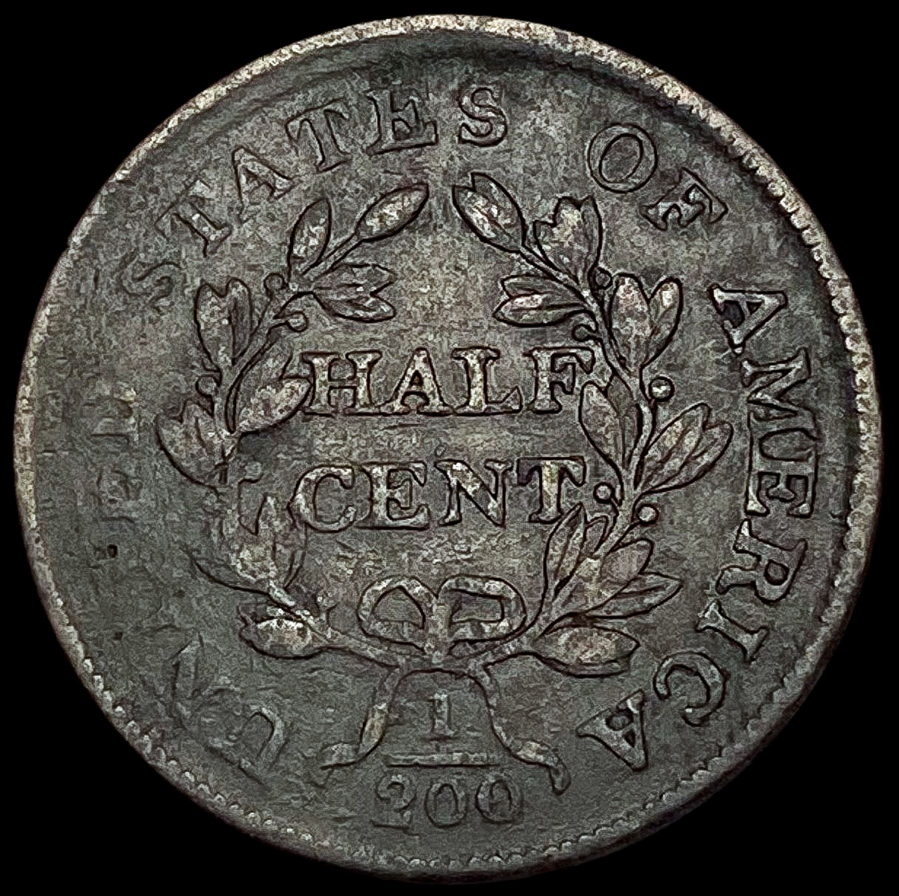 1804 Plain 4 No Stems Draped Bust Half Cent LIGHTL