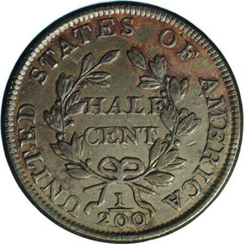 <B>1804<1/2 C> Spiked Chin. C-6, B-6, R.2. Die State 1. AU55 NGC. VF35 EAC.</B></I> Braig Die State 1.2. Spiked Chin; Wide fraction, low numerator. This offering of 1804 Cohen-6 Half Cents from the Reiver Collection includes 11 different die states. In the May 1990 issue of <I>Penny-Wise,</B></I> Half Cent specialist Gene Braig presented an illustrated article describing die states of this variety. He gave text descriptions of 44 die states, and illustrated 19 of these with line drawings of the cracks and breaks. Later, Manley described 20 die states, and illustrated all 20 with actual photographs. For each of the following, we have provided both Braig and Manley Die States.<BR> Die cracks encircle nearly all of the reverse lettering, but the tops of all letters remain complete and boldly defined. This example falls just short of an exact match for Braig Die State 1.2. A faint die crack is visible from the first 0 to the second in the denominator, but there is no evidence of the continuation of this crack from the second 0 to the rim. Attractive olive-brown surfaces with some traces of later reddish color. The obverse is moderately abraded and the reverse is lightly abraded.<BR><I>Ex: Charles Adkins (12/17/1990).</B></I> Envelope Included.