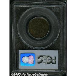 <B>1805 1/2 C Small 5, No Stems AU58 PCGS.</B></I> B-1, C-1, R.1. The Stemless Wreath variety, also noted for a triple punched small 5 in the date. Shimmering with subtle luster, this sharp example has only a hint of wear on the cheek and shoulder. Deep walnut-brown color cedes to lighter tan color in selected areas. A wispy pinscratch above the hair ribbon does not distract.