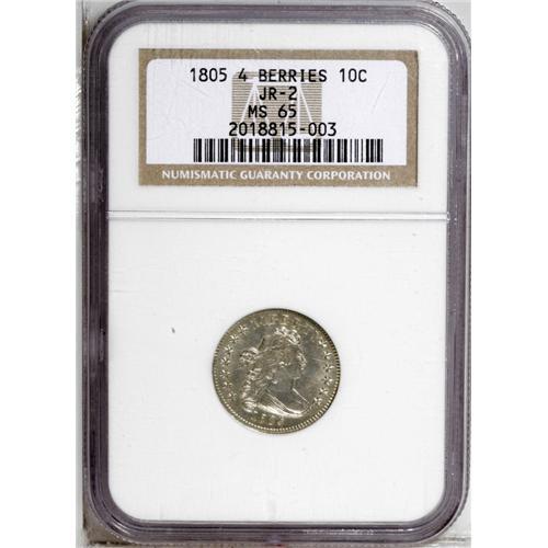 1805 10C 4 Berries MS65 NGC. JR-2, R.2. The dimes of 1