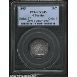 1805 10C 4 Berries XF45 PCGS. JR-2, R.2. Only two varieties are known for this date, and each merits