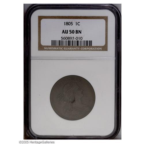 1805 1C AU50 NGC. S-267, R.1. Pleasing medium brown co 1805[1C] AU50 NGC.
