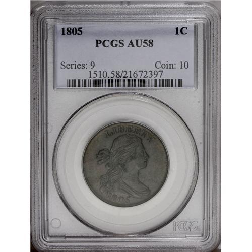 1805 1C AU58 PCGS. S-267, R.1. A crisply struck and gl 1805[1C] AU58 PCGS.