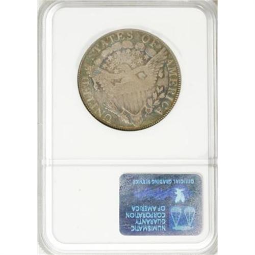 <B>1805/4 50C VF25 NGC.</B></I> O-101, R.3. An obvious overdate with much of the Crosslet 4 still apparent. Richly toned in electric-blue, sea-green, gold, and pearl-gray. Most letters in E PLURIBUS UNUM are clear, and the only relevant marks are subdued and located on the field near the chin.<BR><BR><B>Coin Engraver:</B> Robert Scot<BR><BR><b>Shipping:</b> Coins & Currency (<a target="_blank" href="http://www.heritageauctions.com/common/shipping.php">view shipping information</a>)