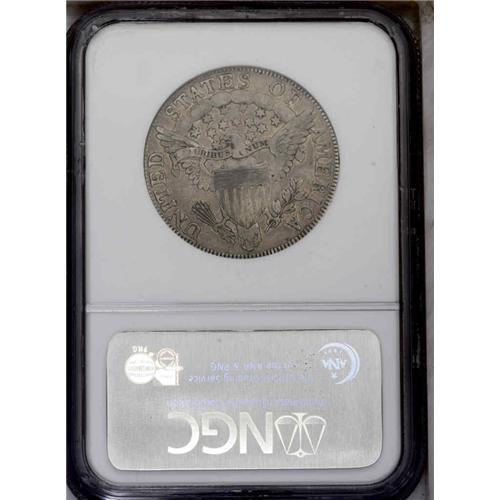 <B>1805/4<50C> O-102, High R.3. XF40 NGC.</B></I> The obverse of Overton 102 is the same as that of Overton 101, but the reverse is different, displaying four berries and 12 arrows instead of 4 1/2 berries and 13 arrows. The present coin is an early die state lacking the crack through star 2 that is mentioned in Overton. The reverse crack from the upper right wing tip to the tops of AM is extremely faint. Although not a rare variety, higher grade examples are infrequently encountered. Occasional hints of luster emerge from the relatively clean silver-gray surfaces. Aside from some weakness on the shield, the design elements exhibit nice detail and are well centered. An old, blended scratch in the upper right obverse field identifies the piece. Envelope Included.
