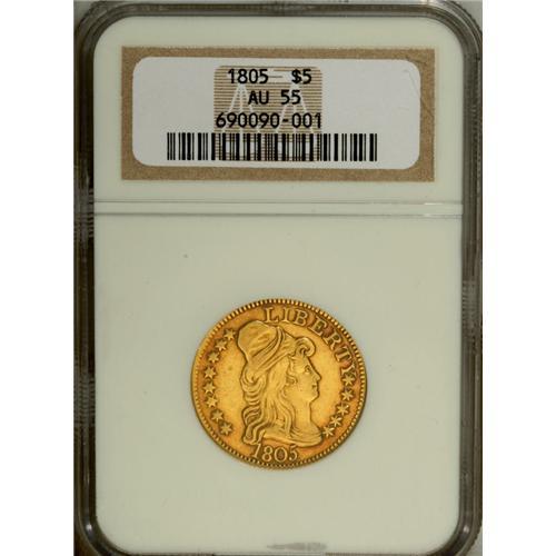 1805 $5 AU55 NGC. Close Date, Breen-6445, BD-2, R.4. T
