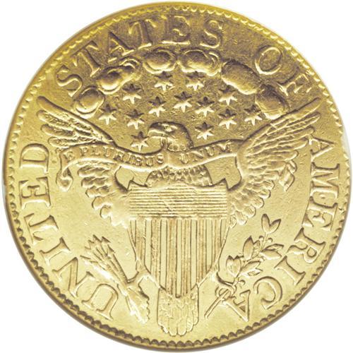 <B>1805 $5 --Ex-Jewelry--ANACS. AU50 Details.</B></I> Close Date, Breen-6445, BD-2, R.4. A die crack through the 0 in date, and an incomplete leaf near the C in AMERICA identifies the scarce BD-2 variety. Bright and moderately glossy, but many collectors would treasure this splendidly detailed and partly lustrous early half eagle.<BR><BR><b>Shipping:</b> Coin/Currency (<a target="_blank" href="http://www.heritageauctions.com/common/shipping.php">view shipping information</a>)