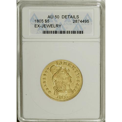 1805 $5 --Ex-Jewelry--ANACS. AU50 Details. Close Date,