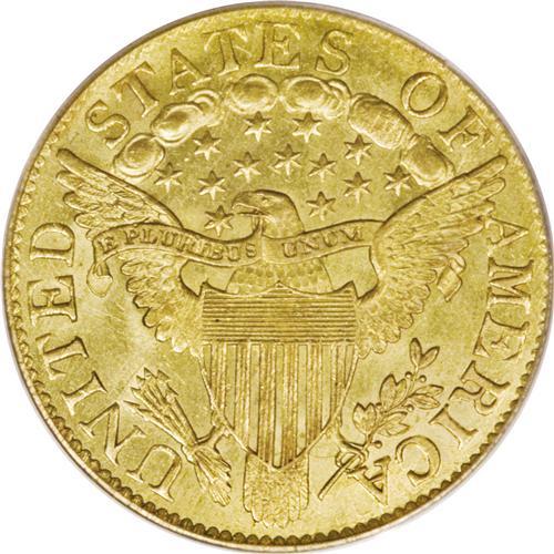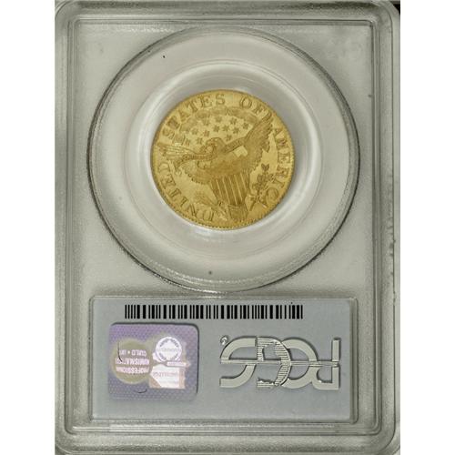 <B>1805 $5 MS64 PCGS.</B></I> Close Date, Breen-6445, BD-2, R.4. Star 13 is firmly embedded in the bust of Liberty. The 1 in the date has a perfect bottom serif, unlike that on the BD-3 through BD-5 varieties, and the flag of the 5 overlies the bottom of the drapery lines. On the reverse the leaf is free of the I in AMERICA, and IT in UNITED are separated from each other. Harry W. Bass, Jr. owned <I>seven</B></I> examples of this variety, according to the indispensable <I>Early U.S. Gold Coin Varieties: A Study of Die States, 1795-1834.</B></I> According to that reference, "The attraction no doubt was due to the fact that this hardy reverse die was used for <I>four</B></I> more varieties and the obverse die shattered. Seeing varieties progress through states, especially those with multiple die combinations, enthralled Harry Bass. He put the <I>pieces</B></I> together like a jigsaw puzzle and every time a new state was encountered, he could put another notch on his numismatic belt."<BR> This is a marvelous piece of early gold. The main attraction here is the smooth, soft mint frost that evenly covers each side. Rarely are early type coins seen with abundant mint luster, regardless of denomination, but it is especially challenging on gold coins. The striking details are generally strong throughout but display a couple of areas of localized weakness. For example, the eagle's breast is fully detailed over the shield, but the left (facing) wing is soft where it joins the shield. Liberty's hair is strongly defined overall, with just a bit of weakness on the bottom of the curls. An exceptionally attractive piece of early gold that will be of interest to advanced collectors both by date and type. Population: 18 in 64, 2 finer (2/07).<BR><BR><b>Shipping:</b> Coins & Currency (<a target="_blank" href="http://www.heritageauctions.com/common/shipping.php">view shipping information</a>)