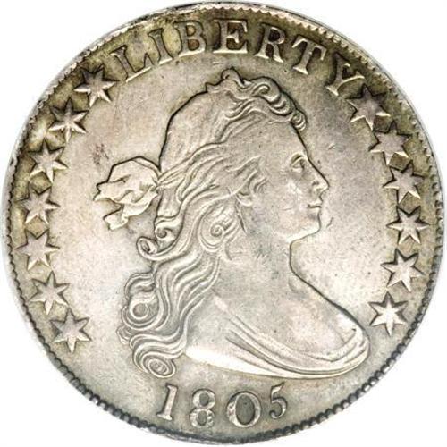 <B>1805 50C --Rim Damage--NCS. XF Details.</B></I> O-105a, R.5. Third and final use of Reverse C. Only faint cracks are visible on the obverse. In this terminal die state, the reverse has several peripheral die cracks with a rim break over ATE.<BR> Both sides have light gold and darker steel toning with traces of luster. The obverse rims have tooling marks at 6 o'clock and 12 o'clock.<BR> Unlisted on Herrman's <I>Auction & Mail Bid Prices Realized, </B></I>this piece is one of the finer examples known, even considering the rim damage. The only pieces listed grade 30/30, 20/20, 12/12, 08/08. Even if the grade of this piece were net-graded at the VF20 or 25 level, it is still one of the finest examples known for the die state.<BR> Haseltine-9; Not in Beistle; Overton-12; PCGS #39278; <I>Encyclopedia</B></I>-4581.<BR><I>Ex: Michael Summers.<BR>From The Westmoreland County Collection of Early Bust Halves, Part Two.</B></I><BR><BR><b>Shipping:</b> Coins & Currency (<a target="_blank" href="http://www.heritageauctions.com/common/shipping.php">view shipping information</a>)